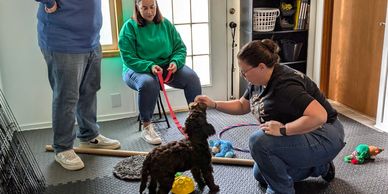 Throughout the program, your puppy will safely encounter a variety of people, puppies, surfaces, sounds, scents, and movement.