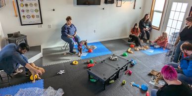 Held at our clean, indoor training studio in Cornelius, our puppy classes are a safe, supportive space to learn, grow, and play—together.
