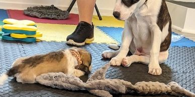 Your puppy will have the opportunity to practice giving and responding to play invitations, learning how to take breaks, and respecting the boundaries of others. These early social experiences help puppies develop adaptability, emotional regulation, and strong canine communication skills—tools that lead to better behavior and smoother interactions as they grow.